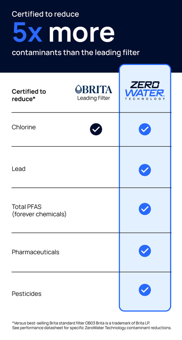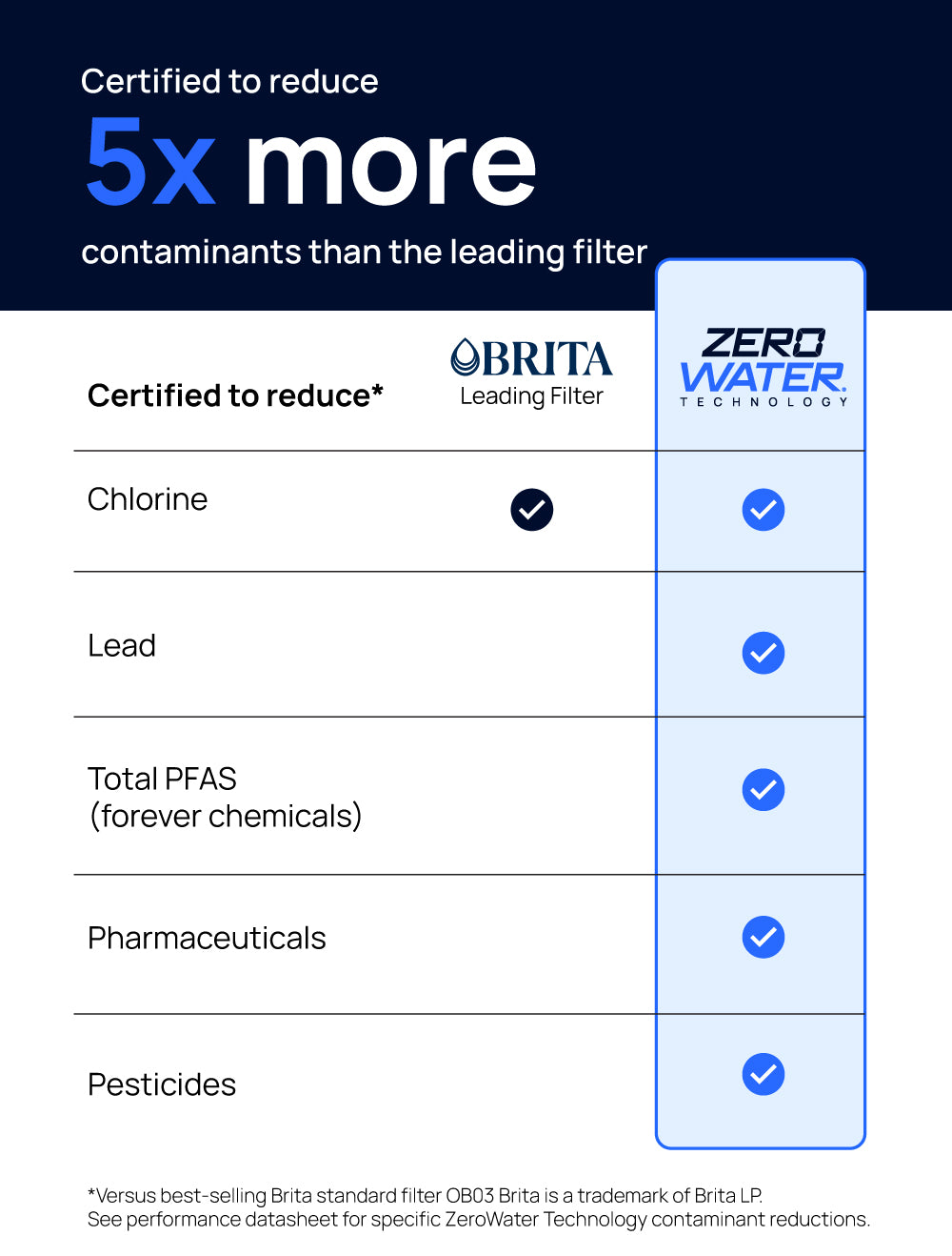 **Brita standard filter OB03. Brita is a trademark of Brita LP. PUR standard filter PPF900ZTM. PUR is a trademark of PUR BRANDS LLC. As of 3/1/2025 Brita® and PUR® Performance Data Sheets.