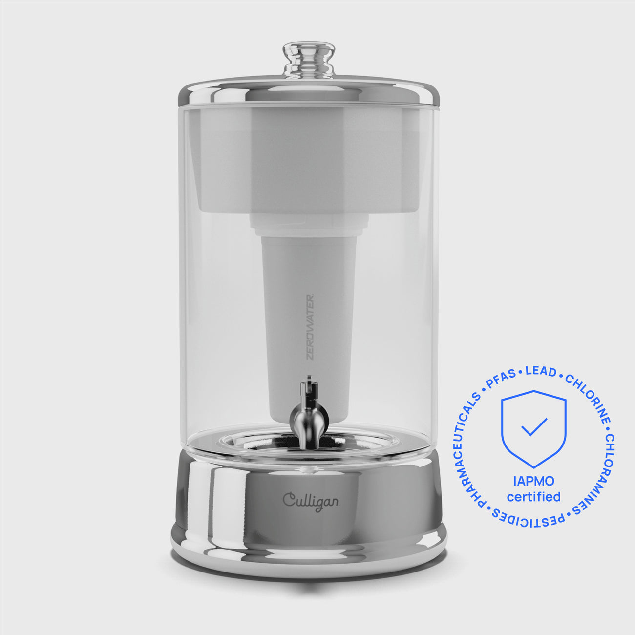 Culligan with ZeroWater Technology filters are certified to reduce over 25 contaminants, including forever chemicals (total PFAS), pharmaceuticals, and heavy metals. For the full list of what we reduce, see our performance results here.